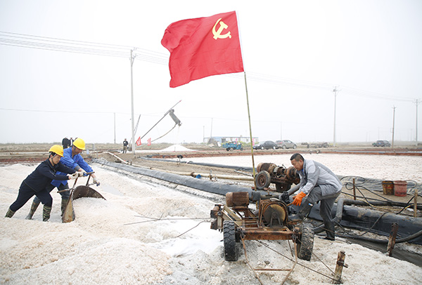 黨旗引領(lǐng) 新灘鹽場春季扒鹽工作在行動